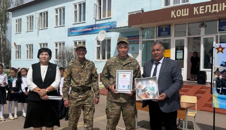 Мерекелік шара соңында, патриоттық тәрбие бағытындағы қолдауы үшін Меркі аудандық Шекара қызметіне мектеп әкімшілігі атынан Алғысхат пен сыйлық табысталды.