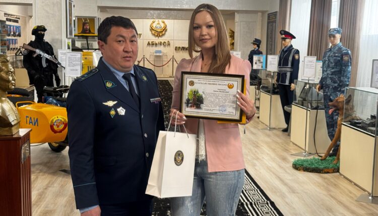 Полиция департаменті бастығының орынбасары Жайдарбек Құттыбаев осы маңызды күні аталған сый үшін ризашылығын білдіріп, Любовь Михайловнаға Алғысхат табыстады.