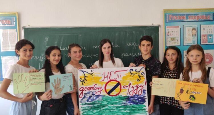 Балалар еңбегін пайдалану және балалардың құқықтарын кемсіту жағдайларының алдын алу мақсатында 9-11 сынып түлектері, бейінді үйірмелермен айналысатын оқушыларымен бірге мектеп психологтары аталмыш тақырып бойынша тренингтер және  сауалнамалар жүргізді. Онда оқушыларға жазғы кезеңде жұмысқа орналасу үшін қайда, қандай мекемеге жүгінуге болатындығы және кәмелетке толмағандарды пайдаланатын жағдайда не істеу керектігі жөнінде мамандар кеңес берді. Сондай-ақ мектеп педагогтары оқушылар арасында адам саудасының алдын алуға бағытталған «Сен өз құқығыңды білесің бе?», «Балалар зорлық-зомбылық үшін емес» атты плакаттар байқауын ұйымдастырды, жастардың құлдыққа қалай тартылатыны туралы ақпараттық бюллетеньдер дайындады. Психолог мамандар орта жастағы балаларға «Қанаудың құрбаны болмау жолдары» тақырыбында әңгіме-тренинг өткізді.