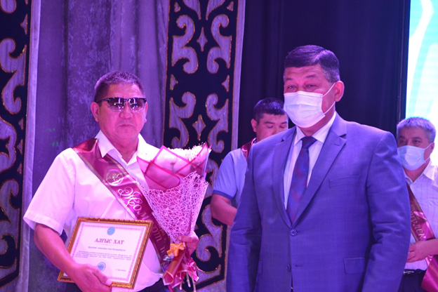 – Осындайда Елбасы Н.Назарбаев өзінің бір еңбегінде «Қазақстандықтардың бойында Отан алдындағы перзенттік парызын түсінетін, өзінің өскен өлкесіне, ауылына, қаласына, оның тарихы мен мәдениетіне, салт-дәстүріне құрметпен қарауға үндейтін шынайы патриотизмді қалыптастыру керек» – деп атап өткені еріксіз еске түседі. Туған топырақтан қуат алып өскен әрбір меркілік түлек Тәуелсіз еліміздің игілігін еселей түседі және сол арқылы кейінгі жас ұрпаққа үлгі болады деген сенімім мол. Баршаңызды туған өлкеміздің әл-ауқатын көтеруге шақырамын! – деген соң, шақырылған түлектерді Алғыс хатымен марапаттап, және «Абай жолы» романының 4 томдық кітабын, естелік сыйлықтарын табыс етті ( төменгі суретте).