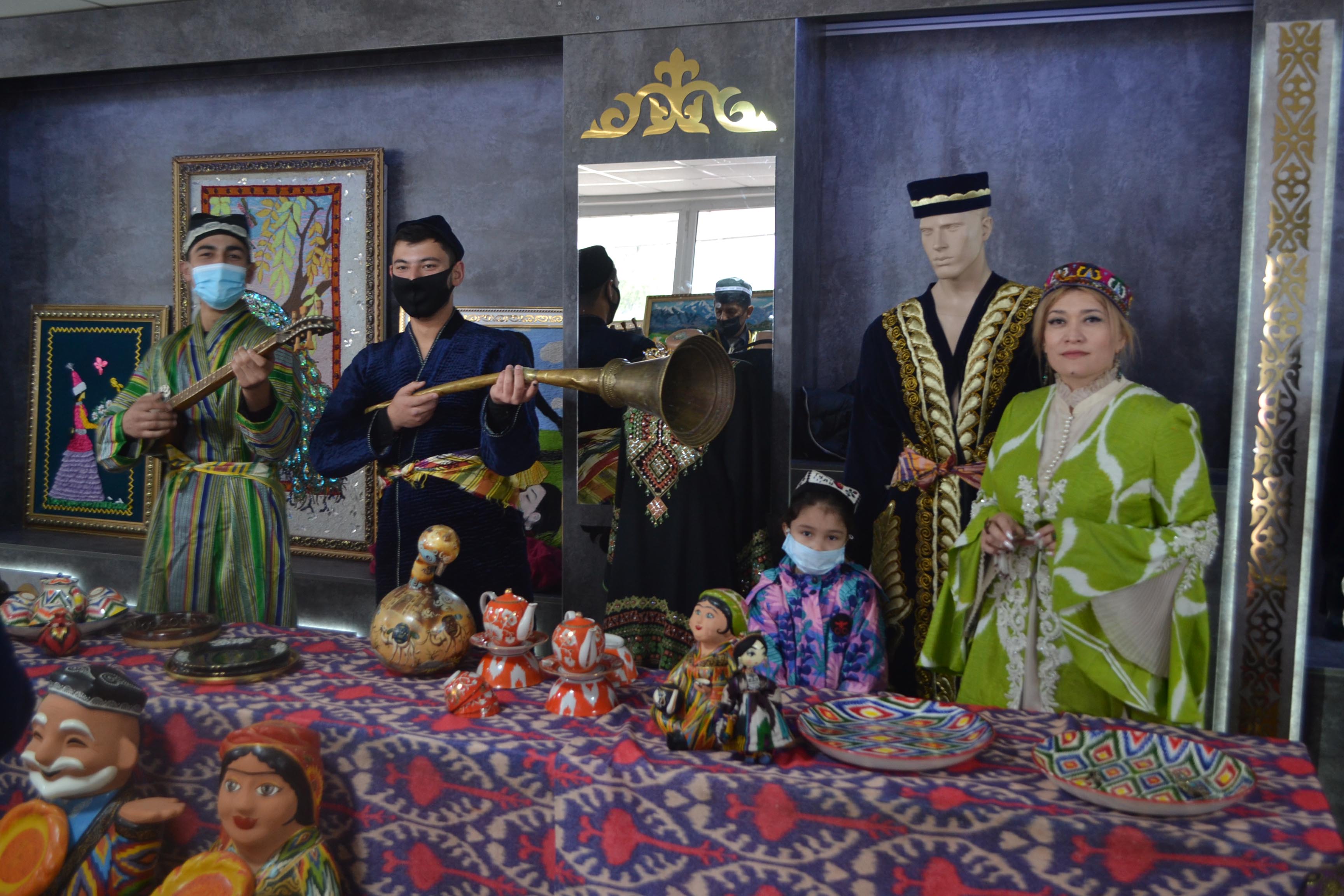Аталған қара шаңырақтың фойесіне енгеніміз де сол еді, мұнда түрлі этнос өкілдерінің ауызбен айтып жеткізу қиынға соғатындай қайталанбас әсем ұлттық салт-дәстүрлерін алақанға салып, сұлу өнердің салмақты сырларынан сыр шертетін тұғыры биік туындыларына кезіктік.