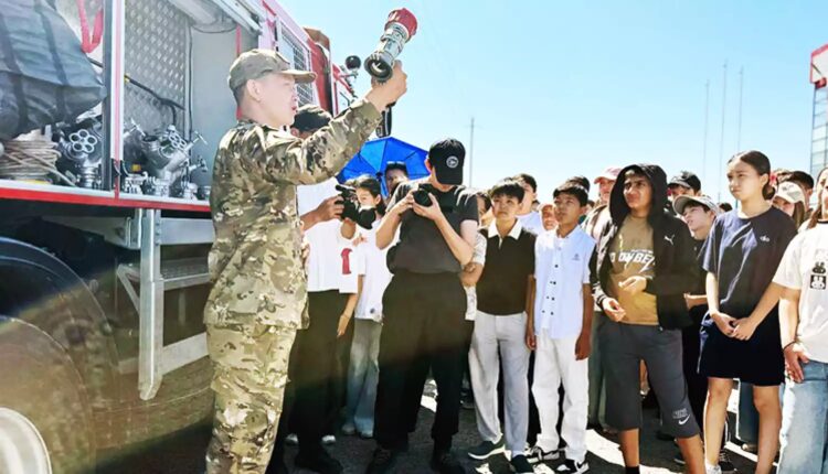 Балаларға заманауи өрт сөндіру техникасы көрсетіліп, қауіпсіздік негіздері түсіндірілді және құтқару жабдықтары таныстырылды. Қонақтар су таситын өрт сөндіру көлігін, өрт сөндіру сатысын, реанимациялық жедел жәрдем көлігін және жол талғамайтын арнайы құтқару техникасын көрді. Мамандар бұл техникалардың қалай қолданылатынын, төтенше жағдайда сабыр сақтап, нұсқаулық бойынша әрекет етудің маңызын түсіндірді.