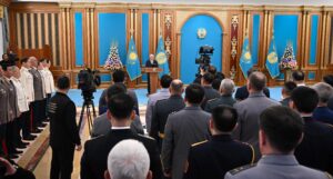 Президент Қасым-Жомарт Тоқаев мемлекеттік наградалар, жоғары әскери және арнаулы атақтар, сыныптық шендер тапсыру рәсіміне қатысты, деп хабарлайды «Aulieatanews» ақпараттық агенттігі Ақордаға сілтеме жасап.
