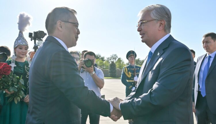 Мемлекет басшысын Манас халықаралық әуежайында Қырғызстан Президенті Садыр Жапаров қарсы алды.