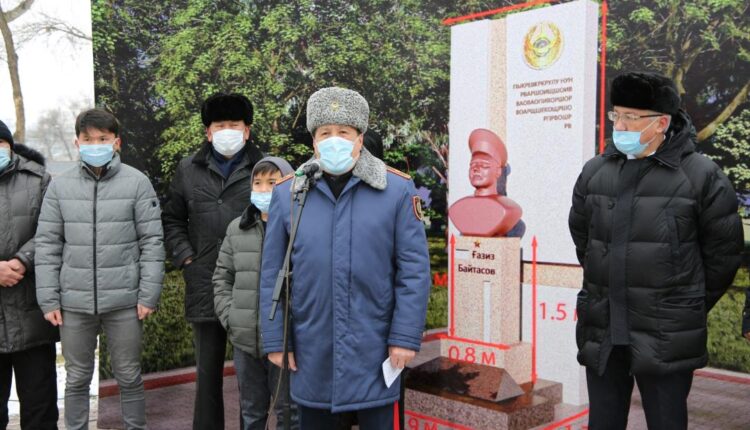 — Ғазиз Байтасов «Халық қаһарманы» жоғары атағын алған бірінші және жалғыз полицей болып табылады. Біздің бастамамызға қолдау білдіргені үшін облыс және Тараз қаласының басшылығына шын жүректен ризашылығымды жеткізгім келеді, — деді полиция департаментінің бастығы Жанат Сүлейменов.