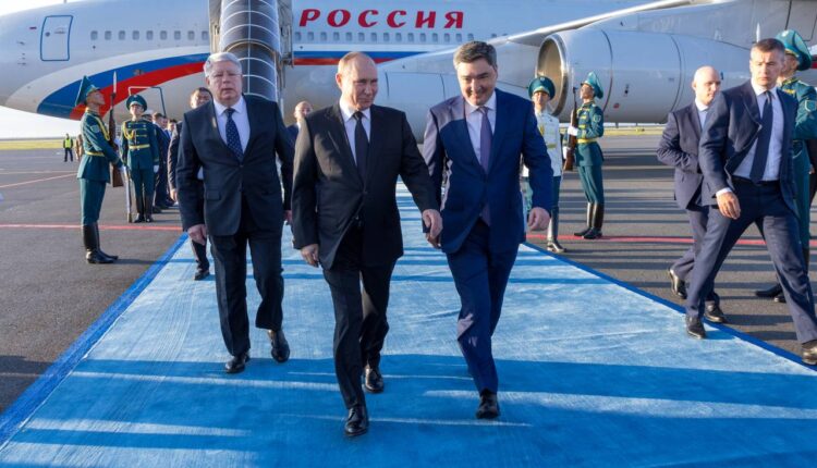 Ресей Федерациясының Президенті Владимир Путинді әуежайда Қазақстан Республикасының Премьер-министрі Олжас Бектенов қарсы алды, деп хабарлайды «Aulieatanews» ақпараттық агенттігі Үкіметтің баспасөз қызметіне сілтеме жасап.